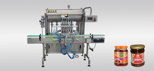 六頭臥式攪拌辣椒醬灌裝機采用韓國光眼裝置,LG韓國PLC、法國電器元件,可連續自動運行灌裝,無瓶不灌裝,配置防滴漏裝置。該醬體灌裝機是星火機械根據市場的需求而全新打造的一款新型設備,滿足了客戶對醬料產品的包裝需要,解決了醬料產品包裝難的問題,為企業的生產灌裝增加了不少的便利。